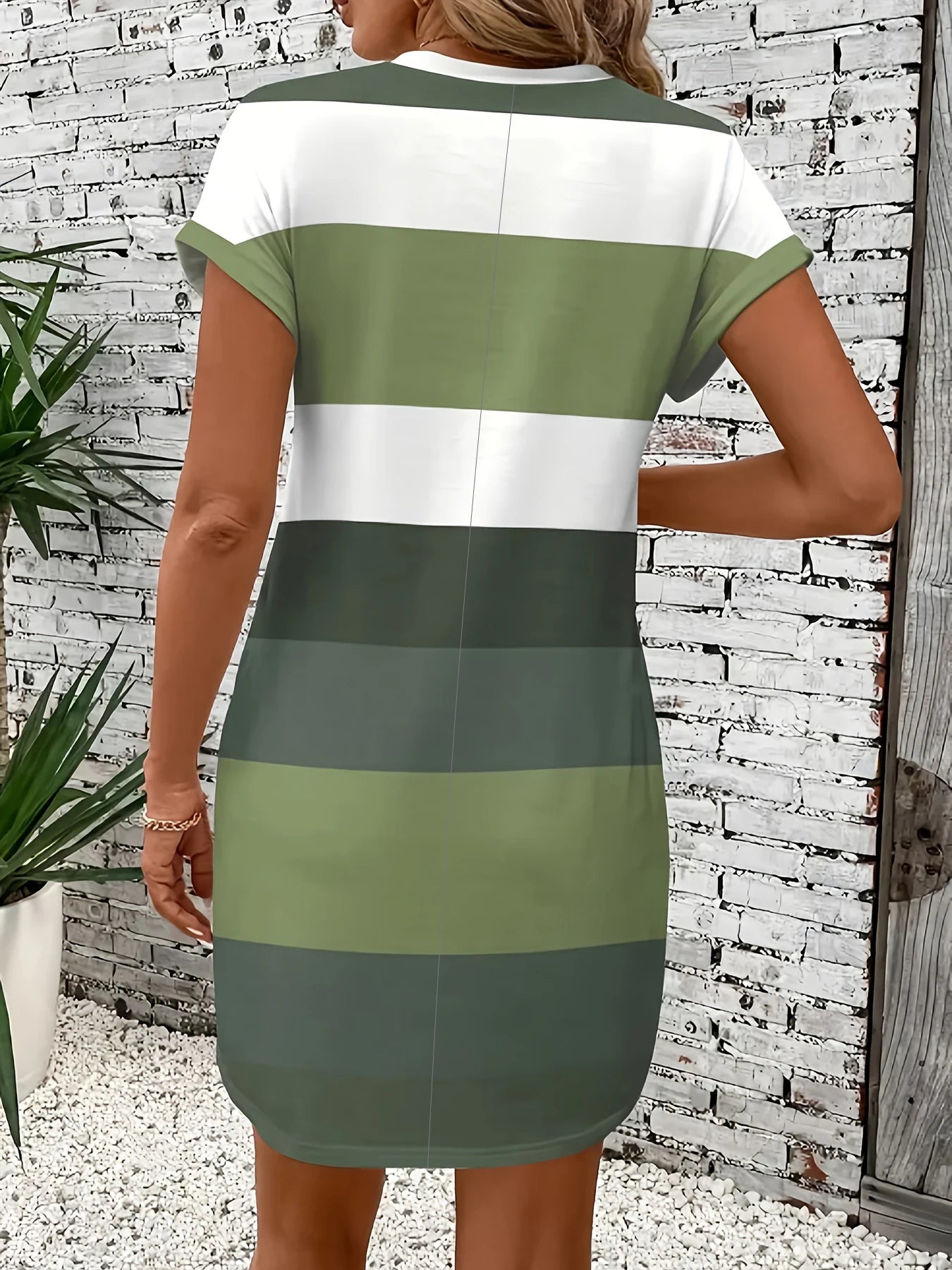 A chic striped dress with a relaxed fit, featuring roll-up sleeves and discreet pockets for effortless everyday elegance.